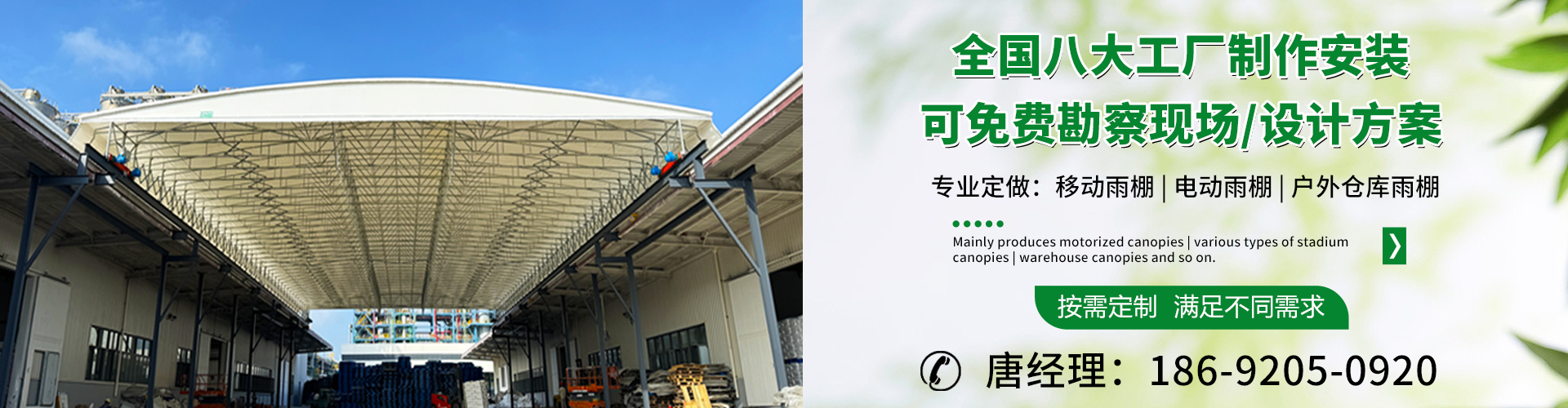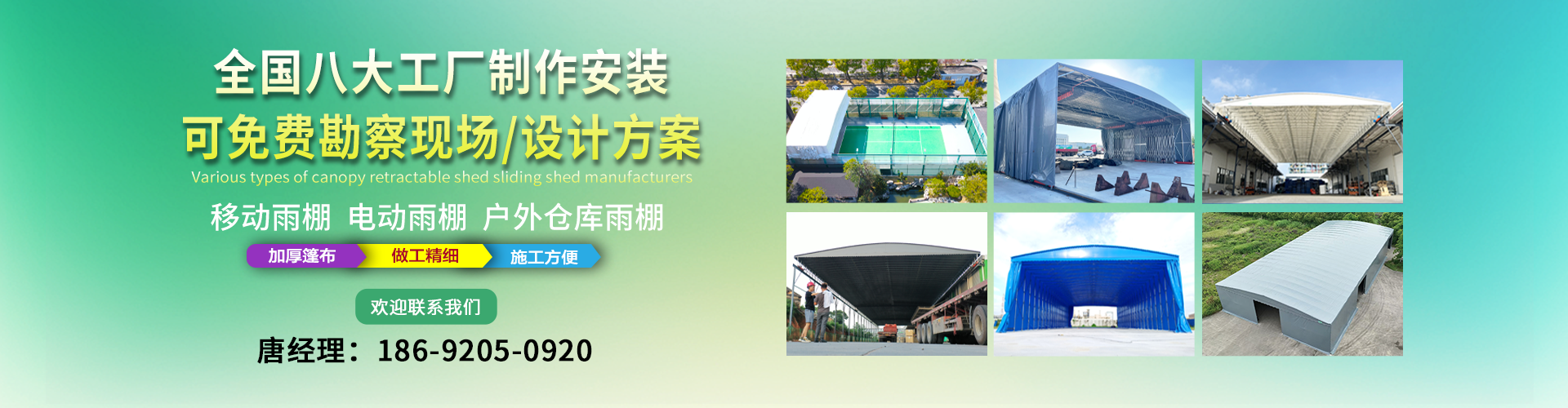 湖南鑫建華鋼結(jié)構(gòu)工程有限公司是一家電動(dòng)雨棚、膜結(jié)構(gòu)車棚研發(fā),生產(chǎn)銷售,施工安裝于一體的專業(yè)鋼結(jié)構(gòu)科技公司,主要產(chǎn)品有伸縮雨棚,電動(dòng)雨棚,膜結(jié)構(gòu)車棚等。 湖南地區(qū)職員目前有200多人,自建廠房15600平方米,配備先進(jìn)的生產(chǎn)流水線,使每件品質(zhì)產(chǎn)品的堅(jiān)實(shí)基礎(chǔ)。 公司在衡陽,蘇州,天津,濟(jì)南,鄭州,江門,佛山,武漢,重慶均設(shè)有服務(wù)工廠,擁有專業(yè)的技術(shù)團(tuán)隊(duì),配備先進(jìn)的設(shè)備和流水線生產(chǎn),產(chǎn)能高,貨源充足,發(fā)貨速度快,服務(wù)區(qū)域廣。 移動(dòng)伸縮棚適用于通道臨時(shí)倉儲(chǔ)、戶外運(yùn)動(dòng)遮陽、污水池遮蓋、能源交通、熱力化工、礦山、船舶制造及市政建設(shè)、物流、碼頭等領(lǐng)域的構(gòu)件制作加工,成品半成品存放、倉庫、野外儀器設(shè)備操作用房等。尤其是對(duì)工廠發(fā)貨、倉儲(chǔ)臨時(shí)遮雨防嗮,梅雨期較長(zhǎng)、建設(shè)周期較短的工程施工等特別適用。還可根據(jù)用戶需求量身定制、適合企業(yè)所需不同款式的產(chǎn)品。 我公司堅(jiān)持“誠信社會(huì)為本,客戶滿意為榮”的經(jīng)營理念,做到質(zhì)量把控,嚴(yán)格管理,精益求精,恪守承諾。使鑫建華逐步走向成熟,其系統(tǒng)化、專業(yè)化日趨完善。以專業(yè)的技術(shù)、科學(xué)的管理,更高的產(chǎn)品質(zhì)量,優(yōu)良的企業(yè)信譽(yù),真誠的客戶服務(wù),靈活多樣的經(jīng)營方式和務(wù)實(shí)創(chuàng)新的企業(yè)精神愿與社會(huì)各界攜手合作,為推動(dòng)智能鋼結(jié)構(gòu)建筑事業(yè)的發(fā)展而不斷努力。...